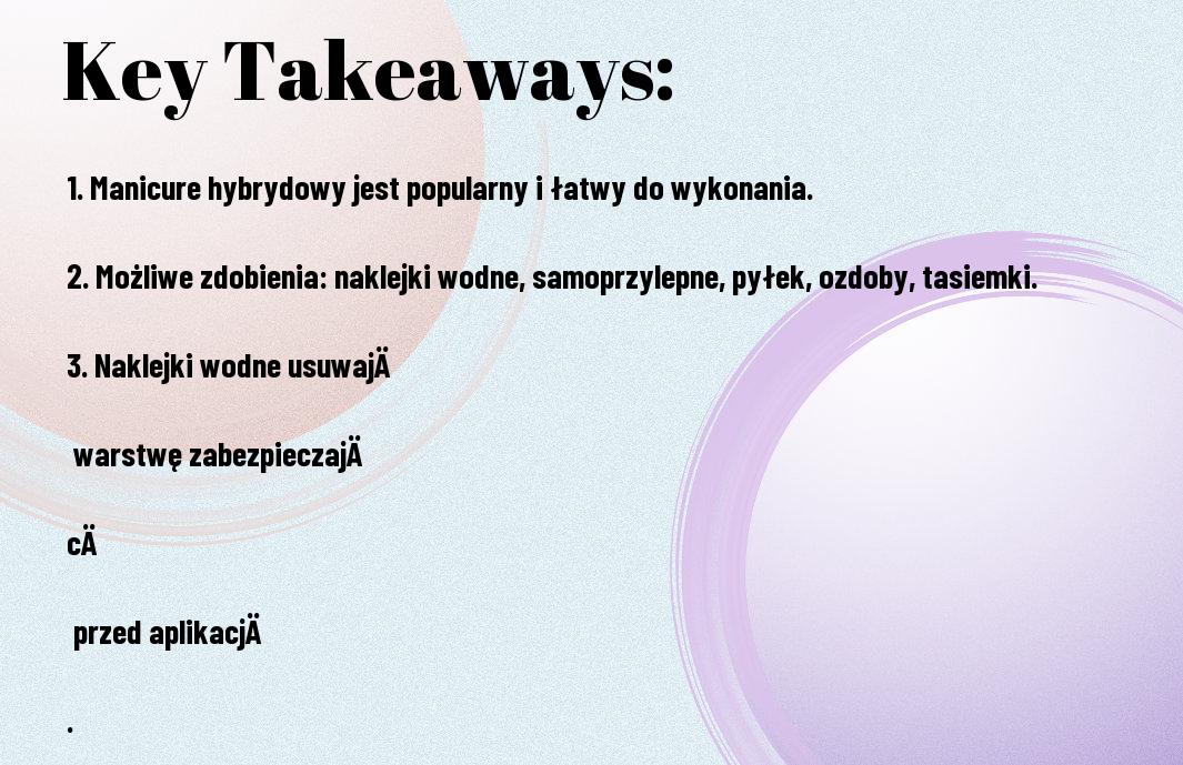Staranne przyklejenie ozdób na paznokcie hybrydowe pozwoli cieszyć się trwałym i estetycznym efektem. Dbając o szczegóły i stosując odpowiednie techniki, można osiągnąć profesjonalny wygląd manicure, który będzie zachwycał.